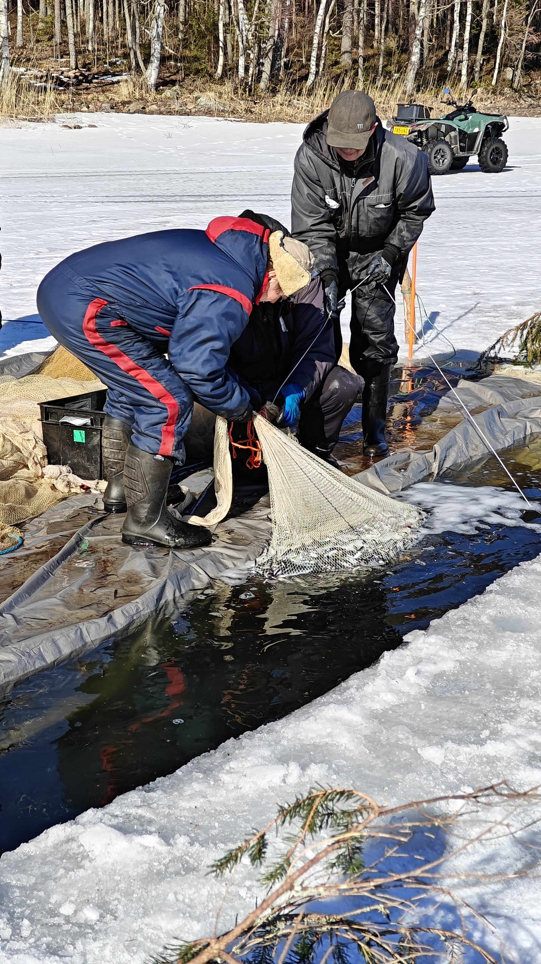 Loppuun kuva perinnekulttuurista. Sitä on taas herätelty Kiukuanselällä. Ihan samoilla paikoilla kuin tämä 1980-luvun taitteessa otettu kuva. Kuvassa Kiljusen Martti (Muikku-Martti) ja Pylkkäsen Pertti kiskovat nuottaa jäälle, isä-Erkki seisoo keskellä, selin tunnistamaton mies, minä valmiina tarpomaan.